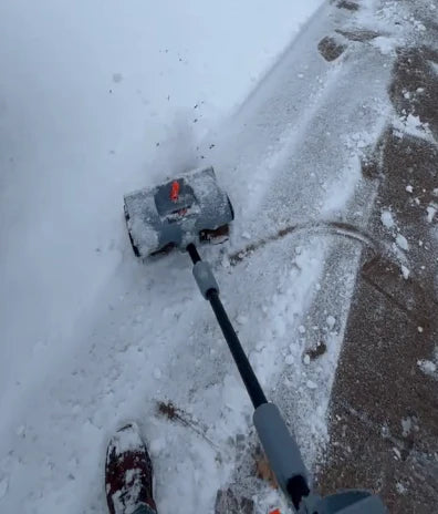 Cada carga completa proporciona hasta 60 minutos de funcionamiento continuo con las dos baterías de litio de alta capacidad de 21 V incluidas. El tiempo real depende de la profundidad y densidad de la nieve, pero la mayoría de los clientes limpian fácilmente su entrada, acera, porche y escalones con una sola carga.